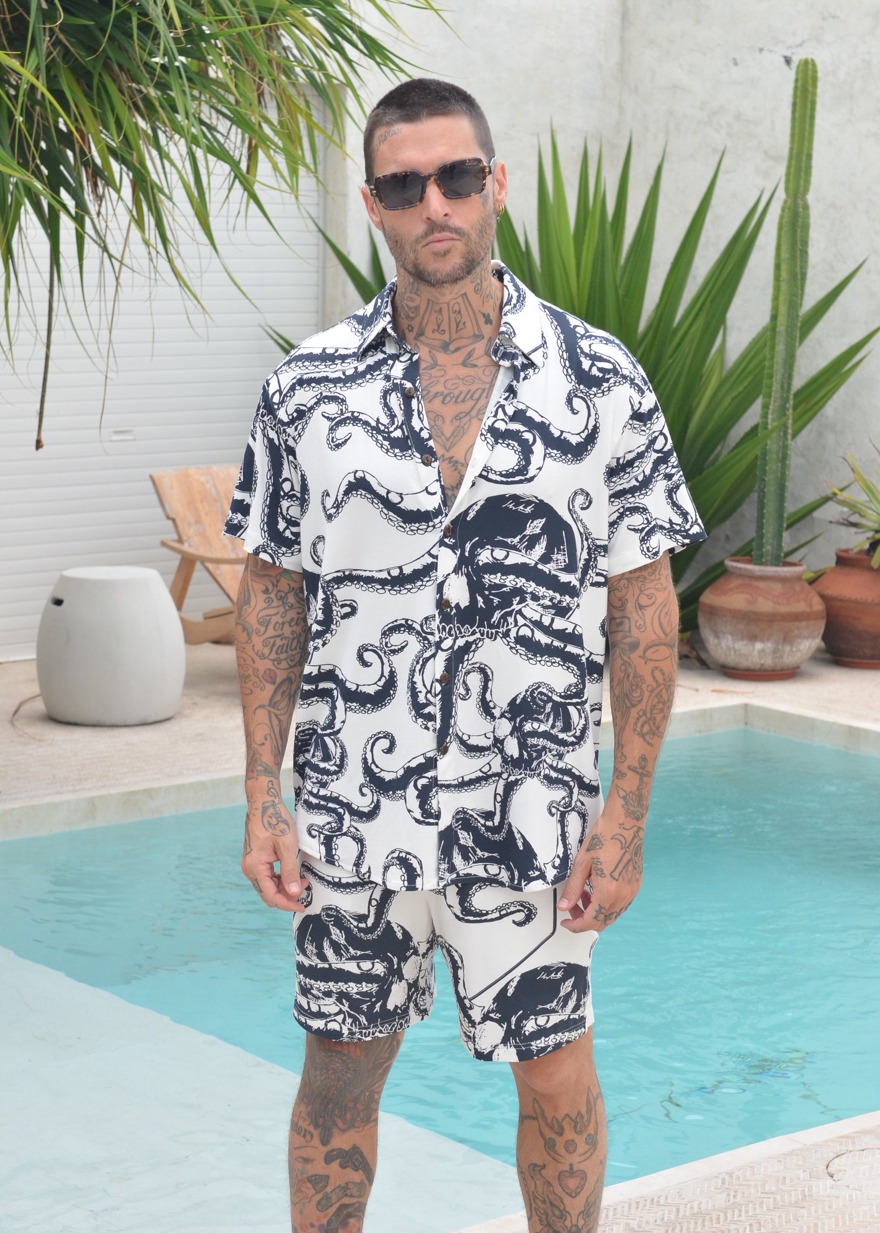 Mr Strangles Hawaiian Shorts - Pearl White