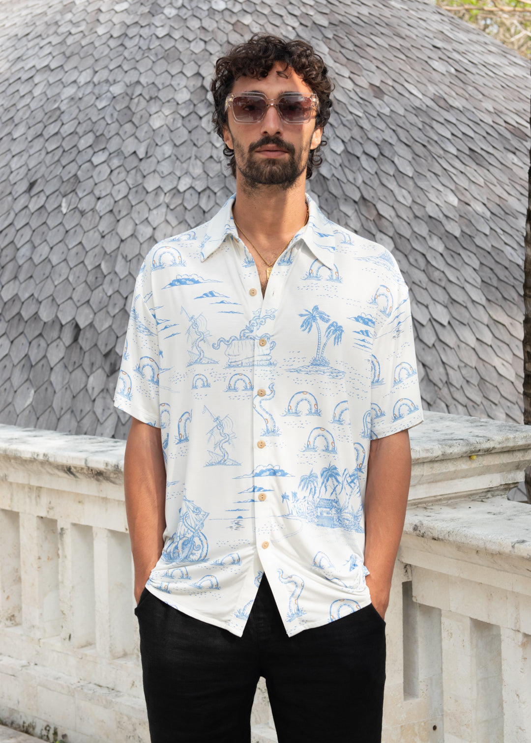 Lost at Sea Hawaiian Shirt - In Pearl White