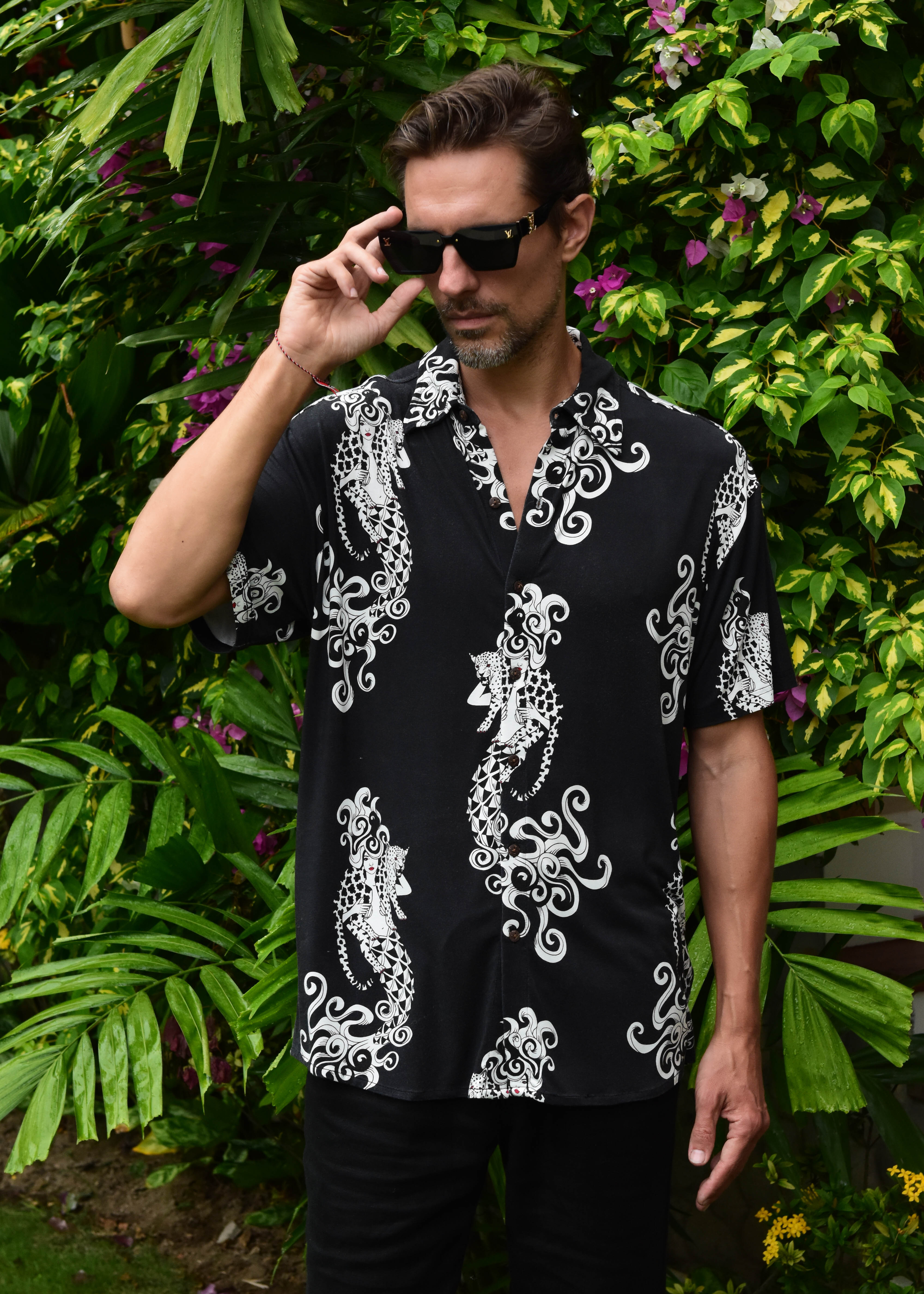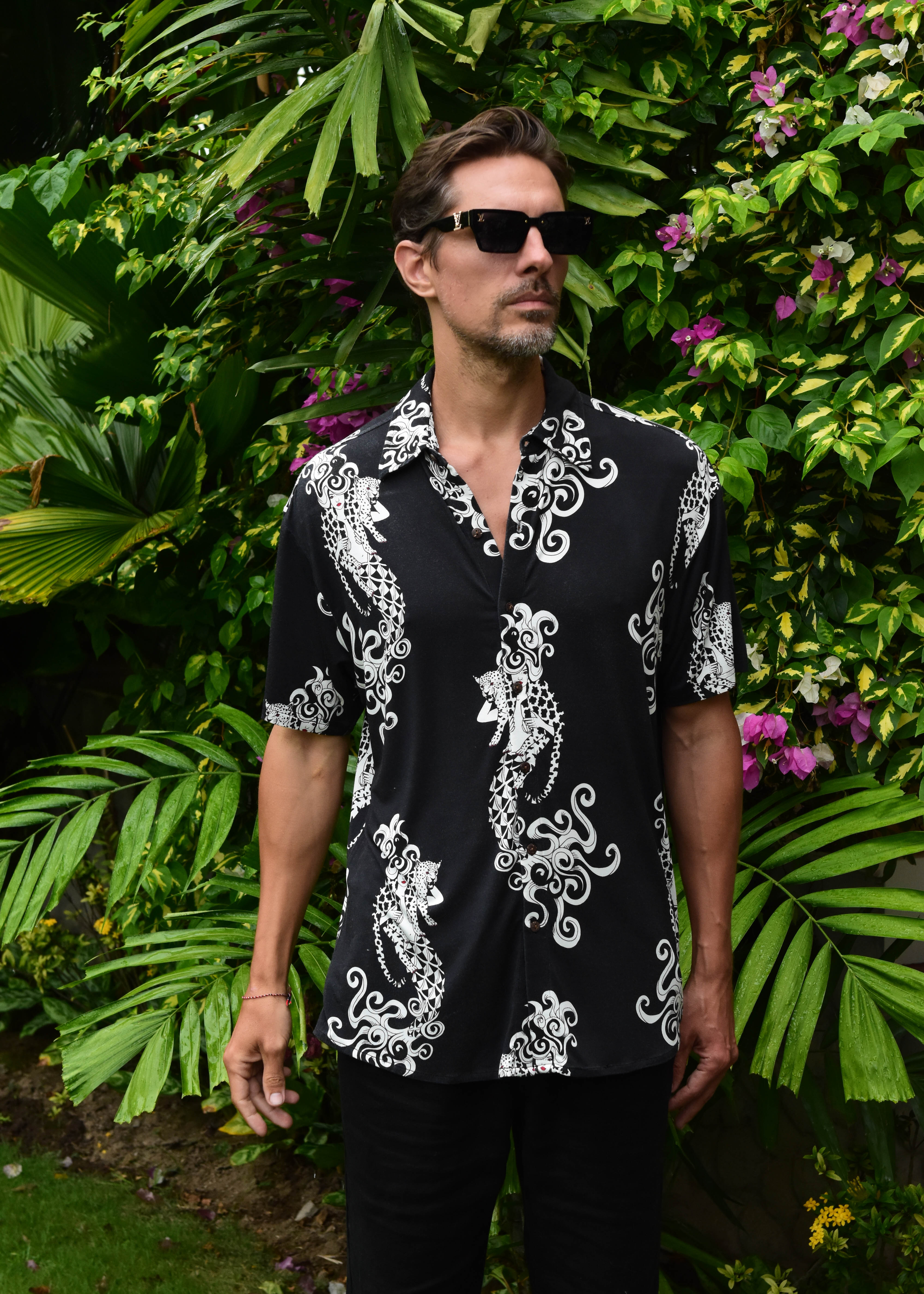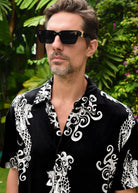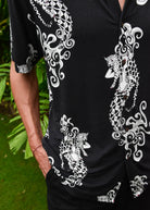 Two Tails Hawaiian Shirt - In Charcoal Black