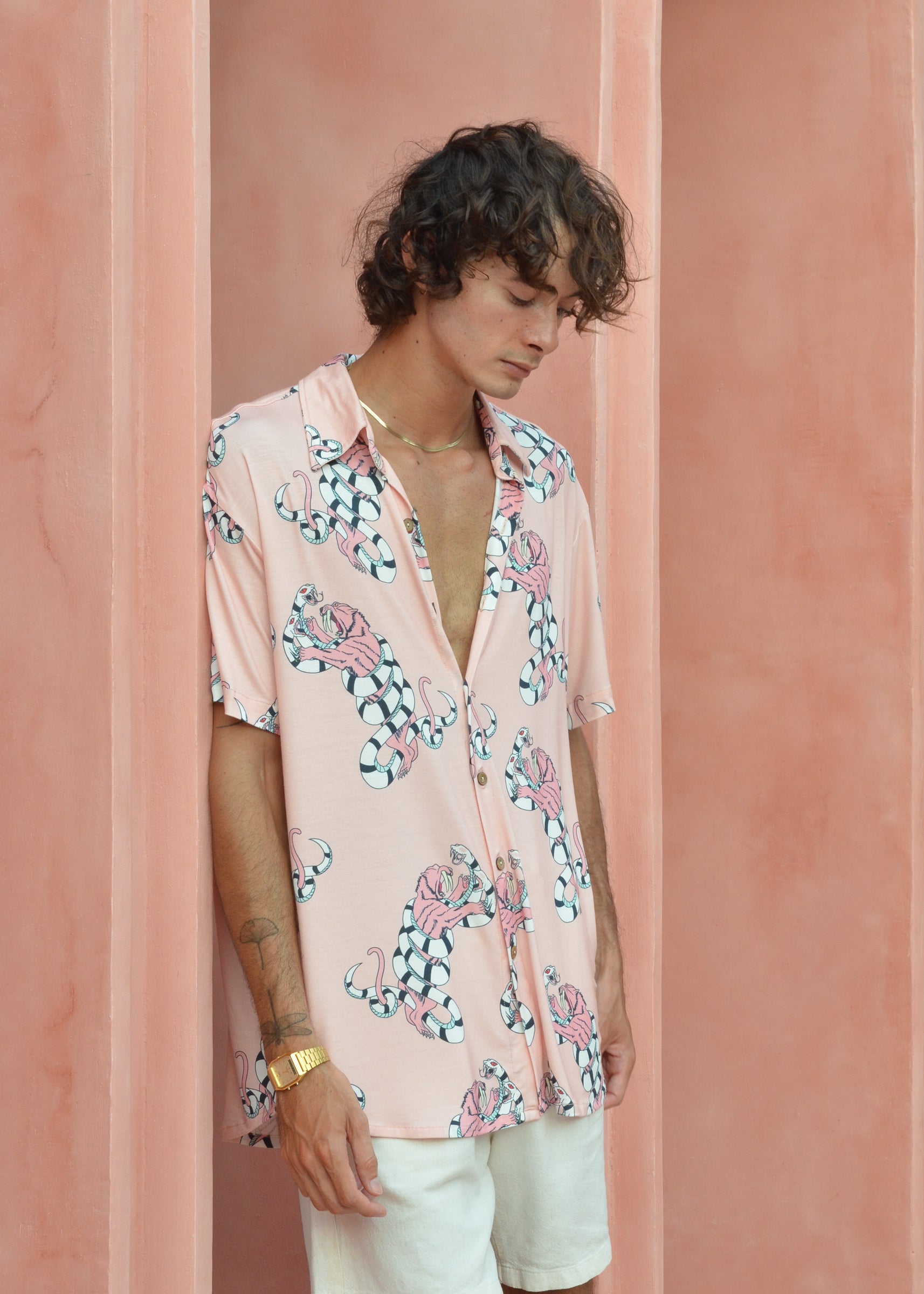 Tiger Fang Hawaiian Shirt - In Bubblegum Pink