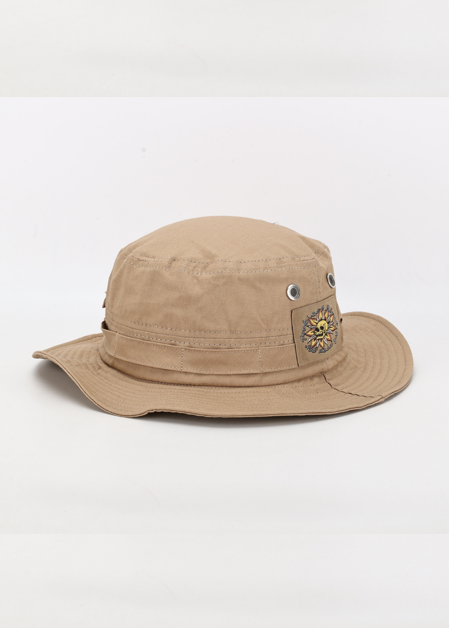 Desert brown fishing hat featuring our newest logo 'Skull Flower'.