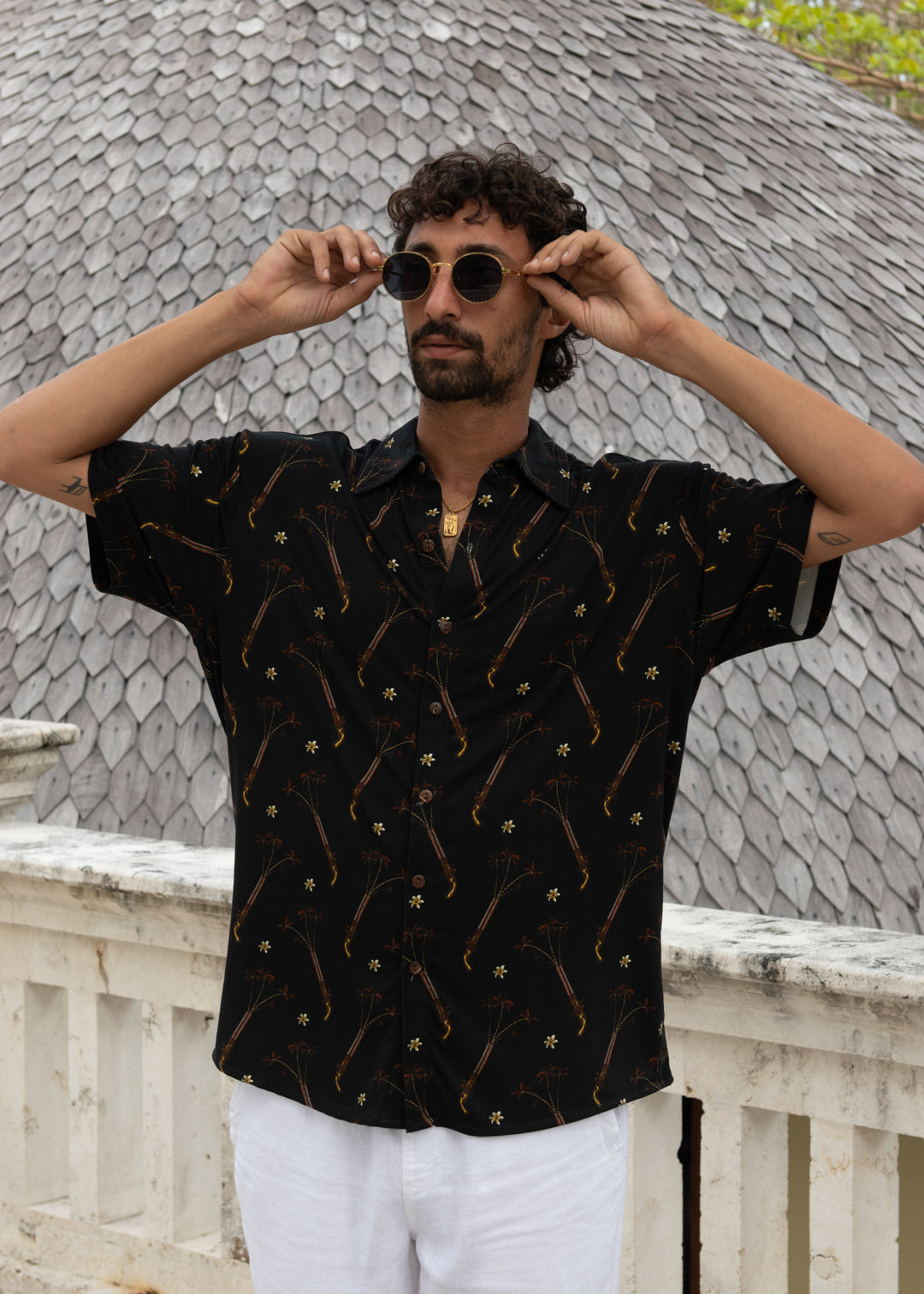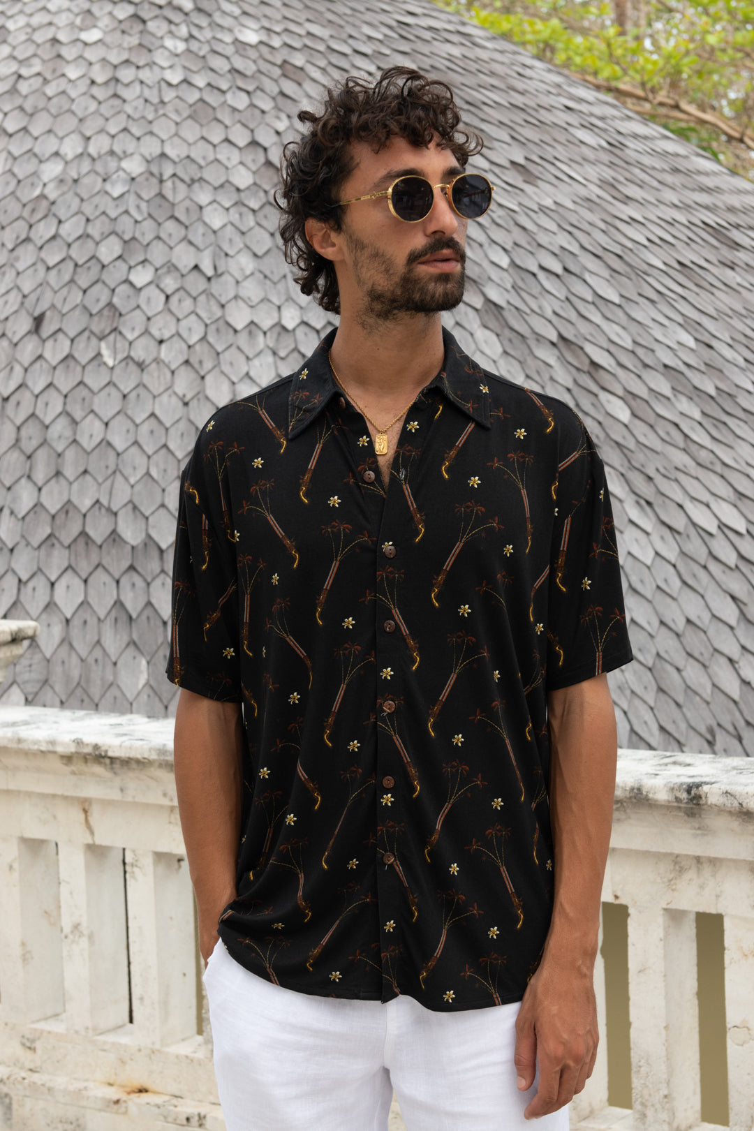 Pistol Palms Hawaiian Shirt - In Pirate Black