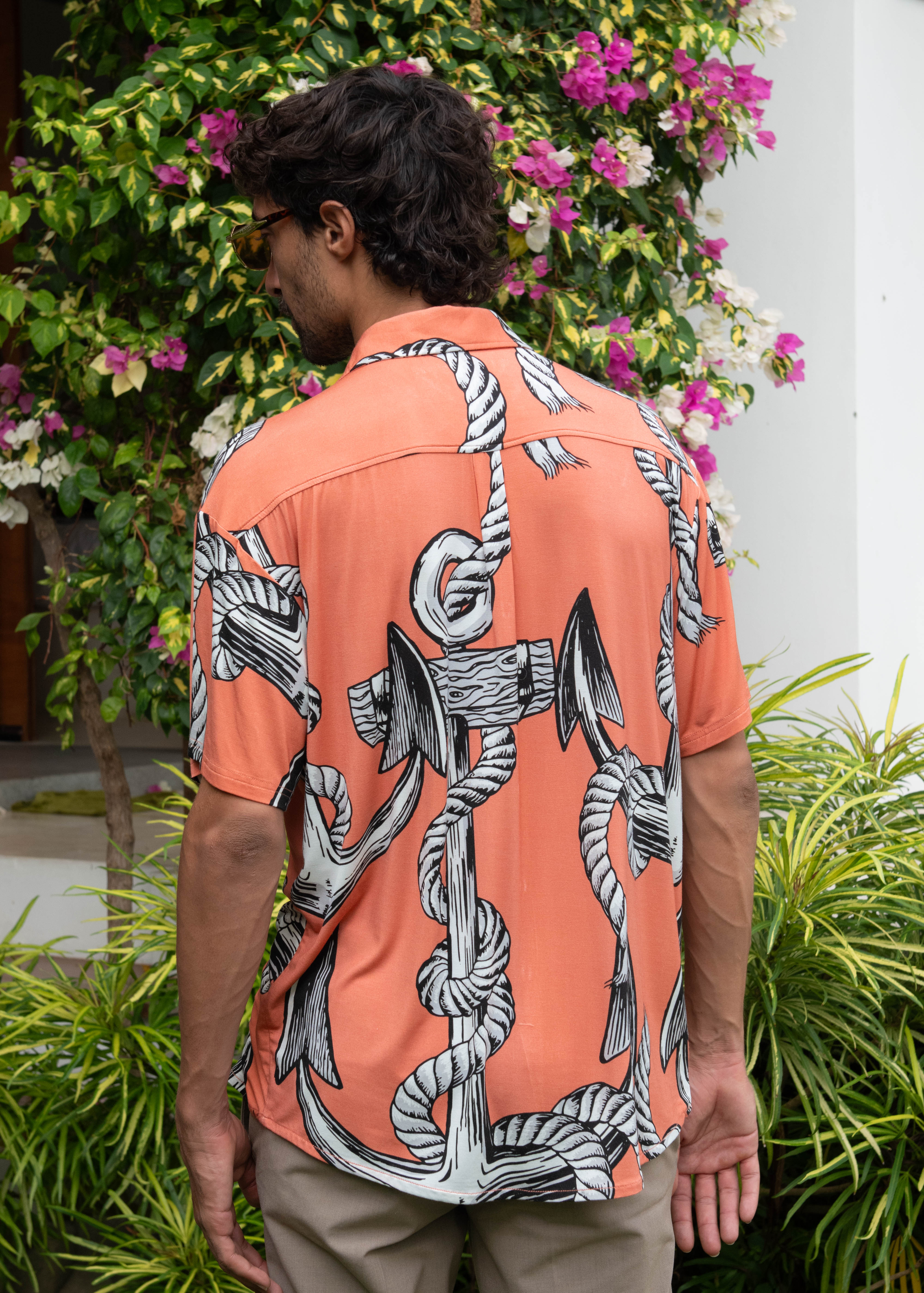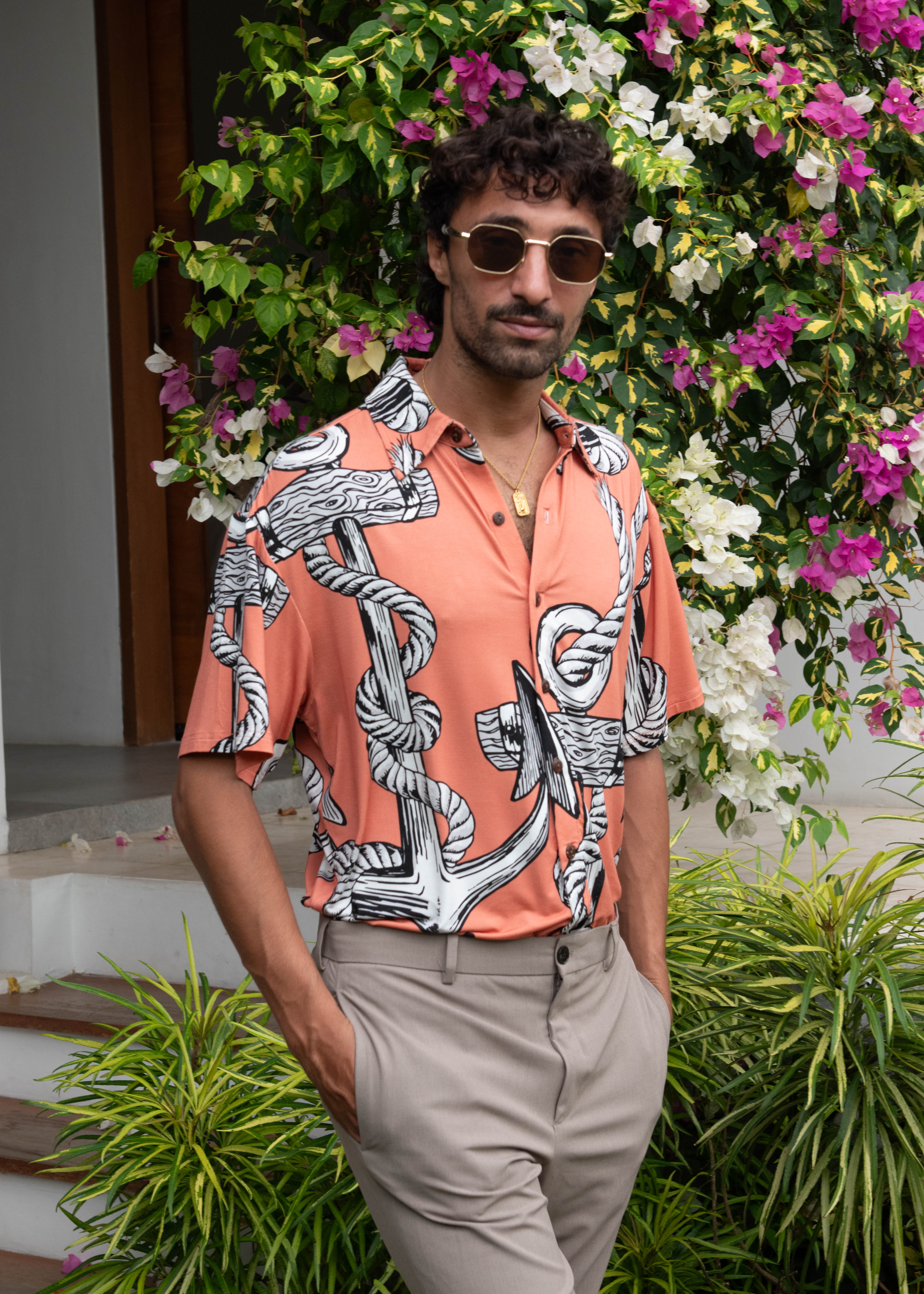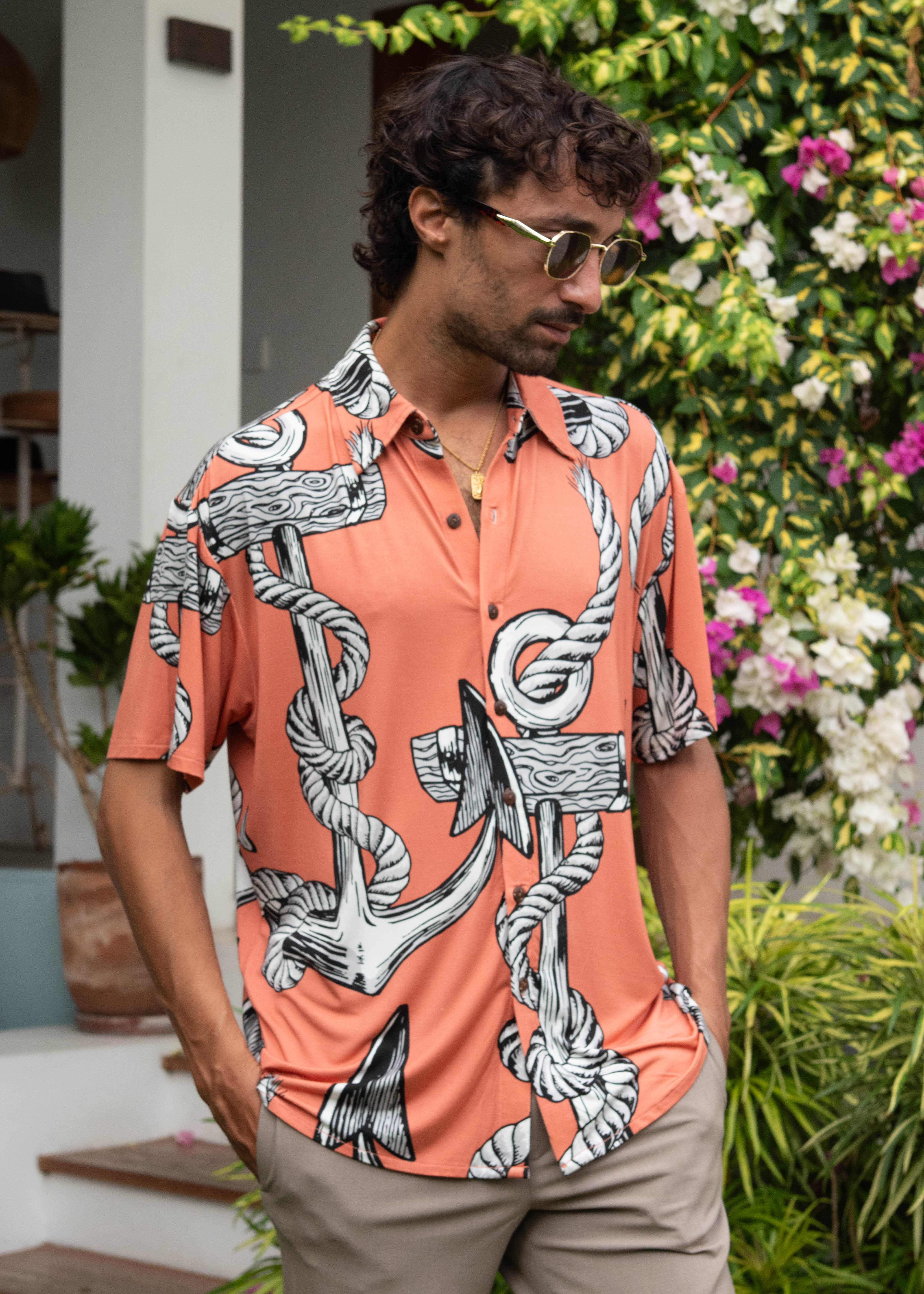 Anchor Management Hawaiian Shirt - In Dusty Pink