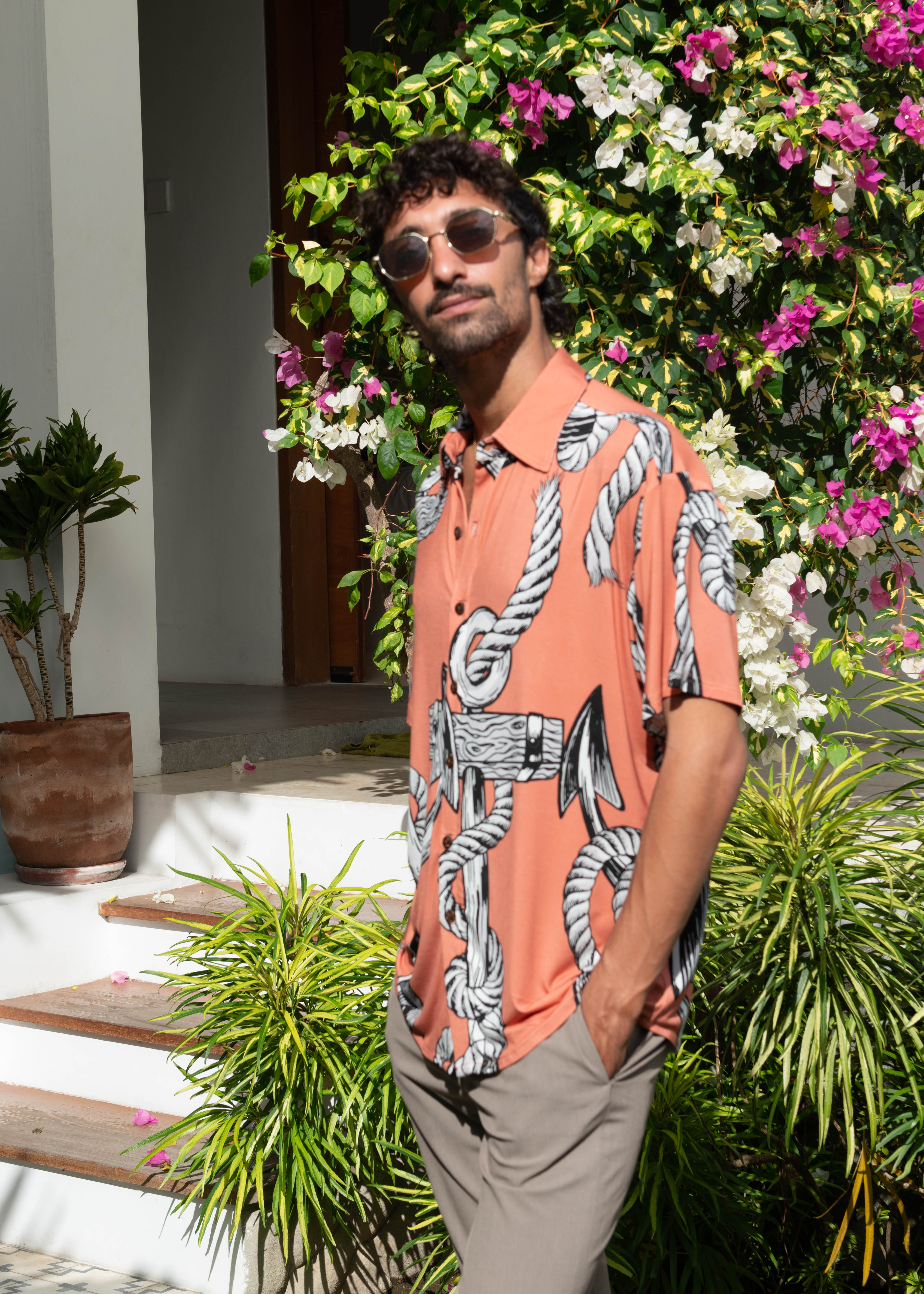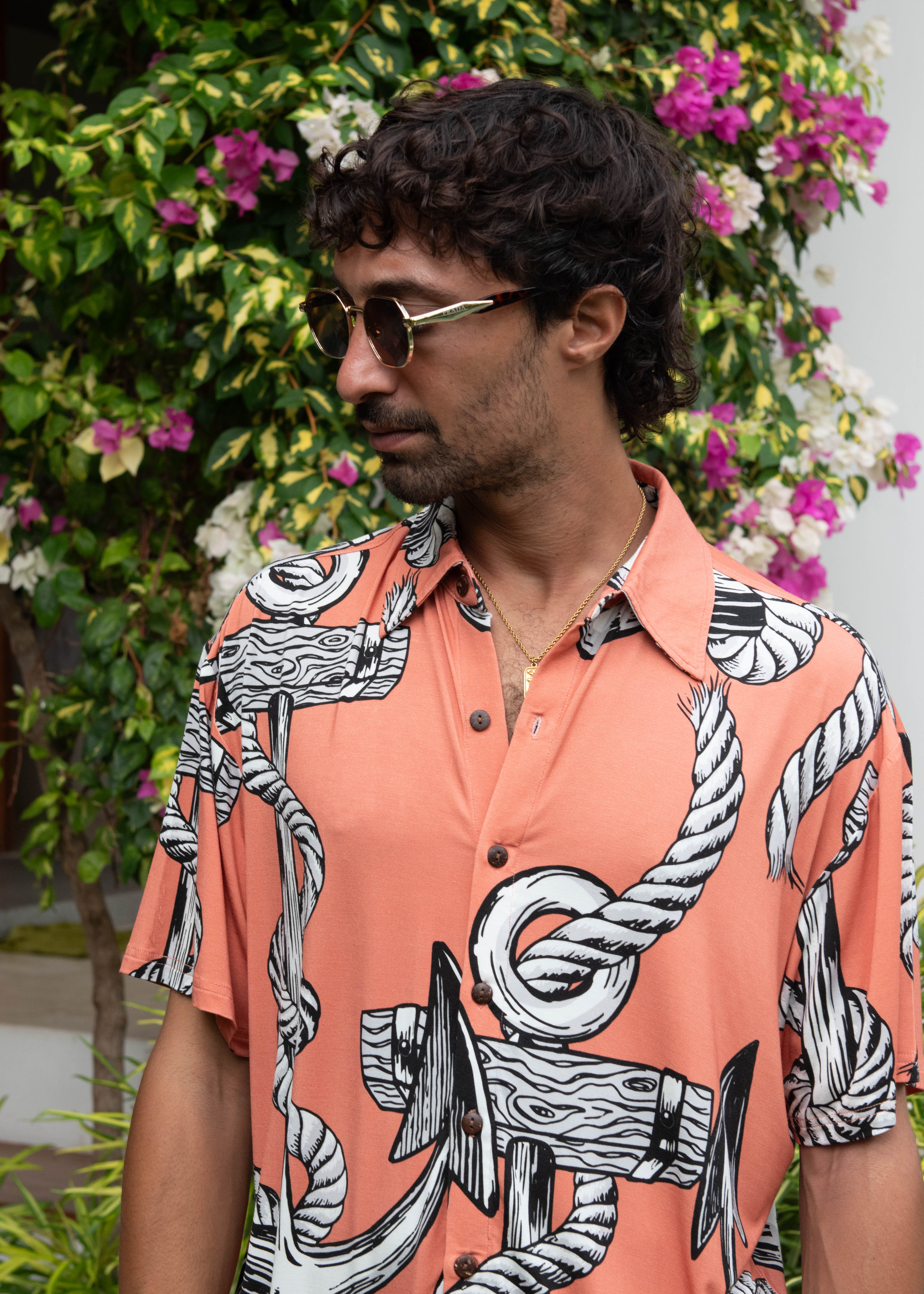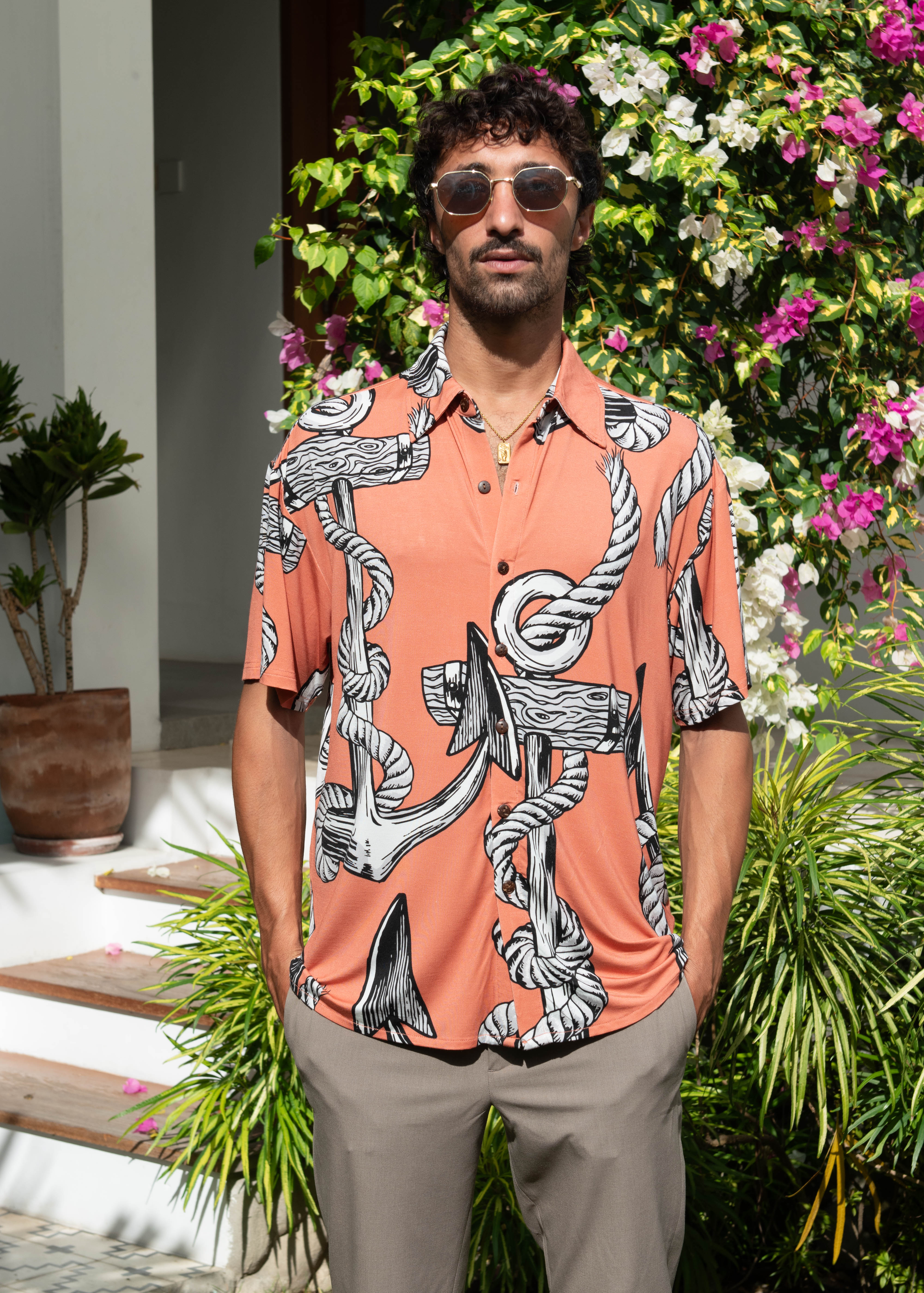 Anchor Management Hawaiian Shirt - In Dusty Pink