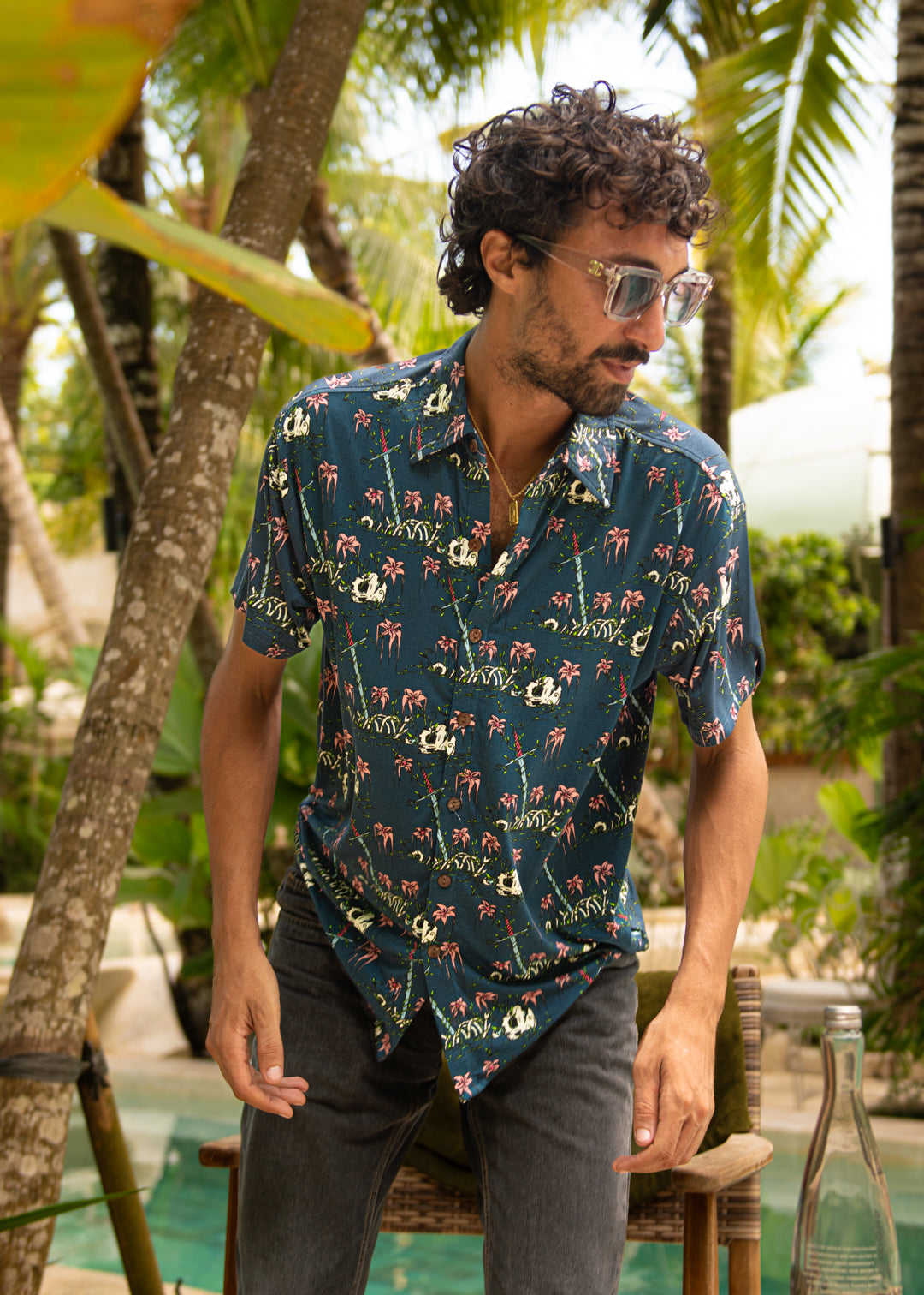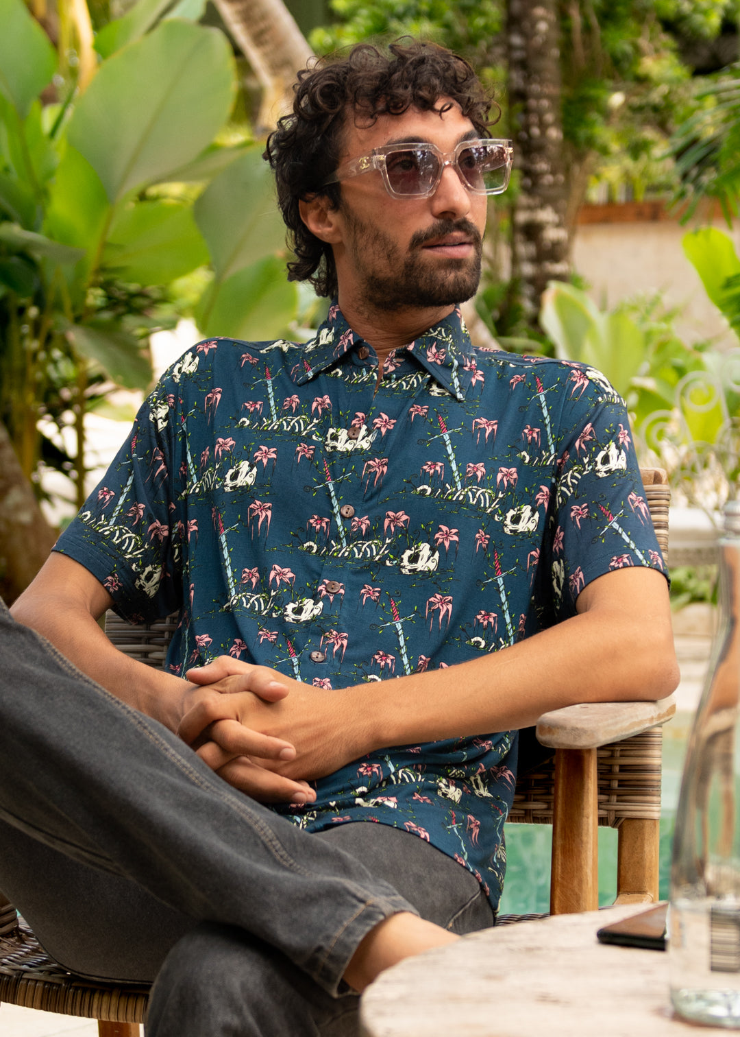 Rest in Paradise Hawaiian Shirt - In Stormy Blue