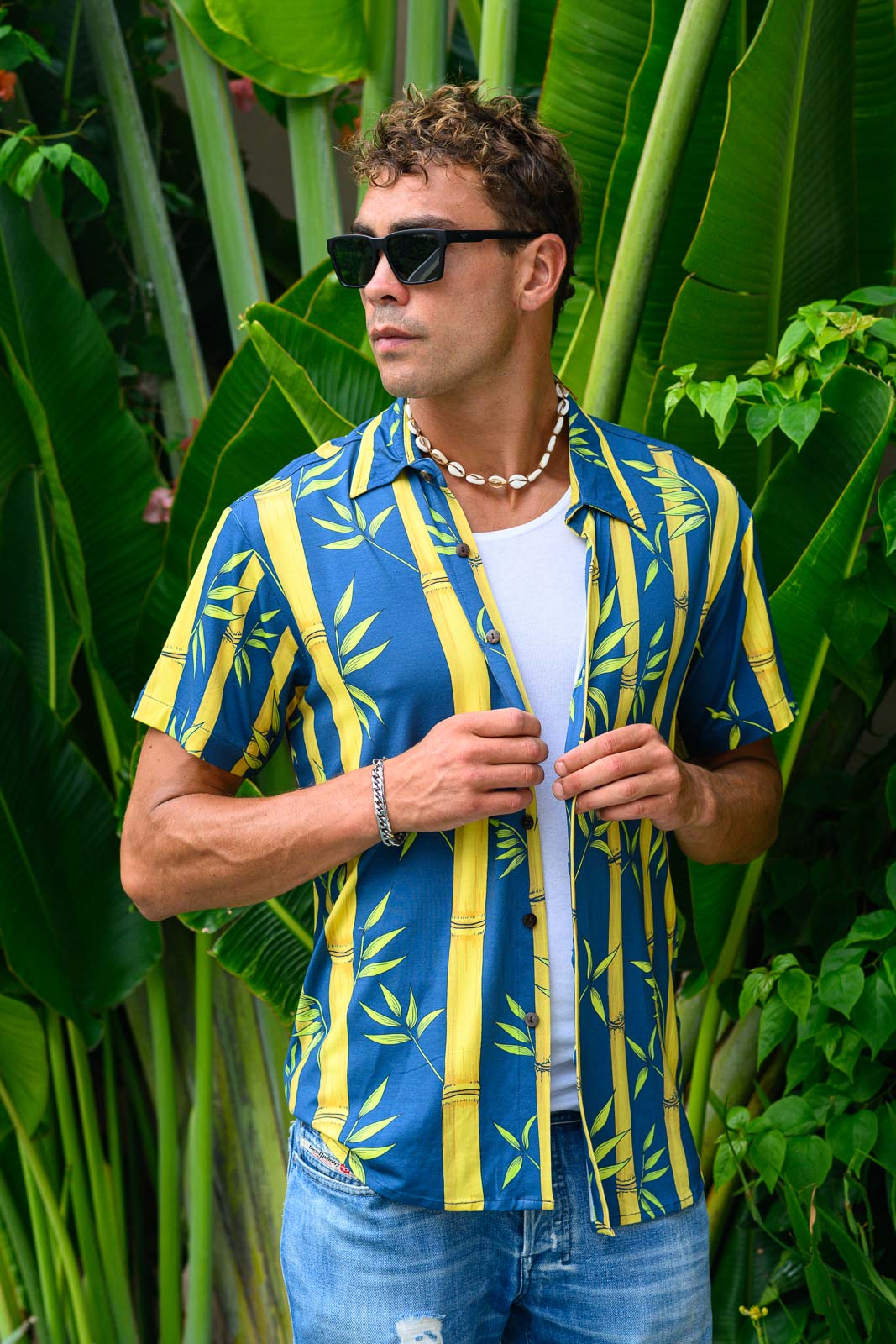 Bamboo Forest Hawaiian Shirt - In Ocean Blue
