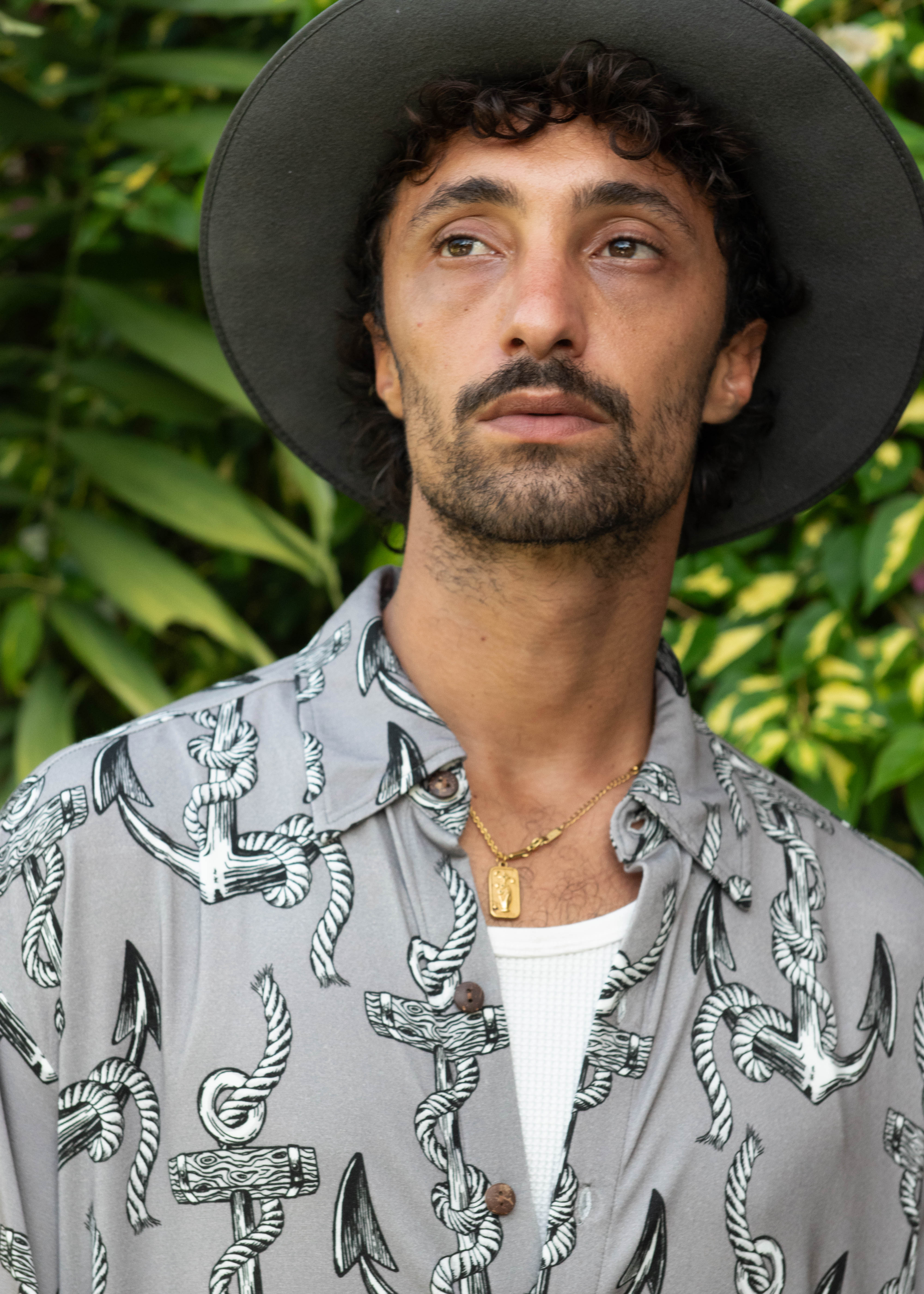 Moor Anchors Hawaiian Shirt - In Steel Grey