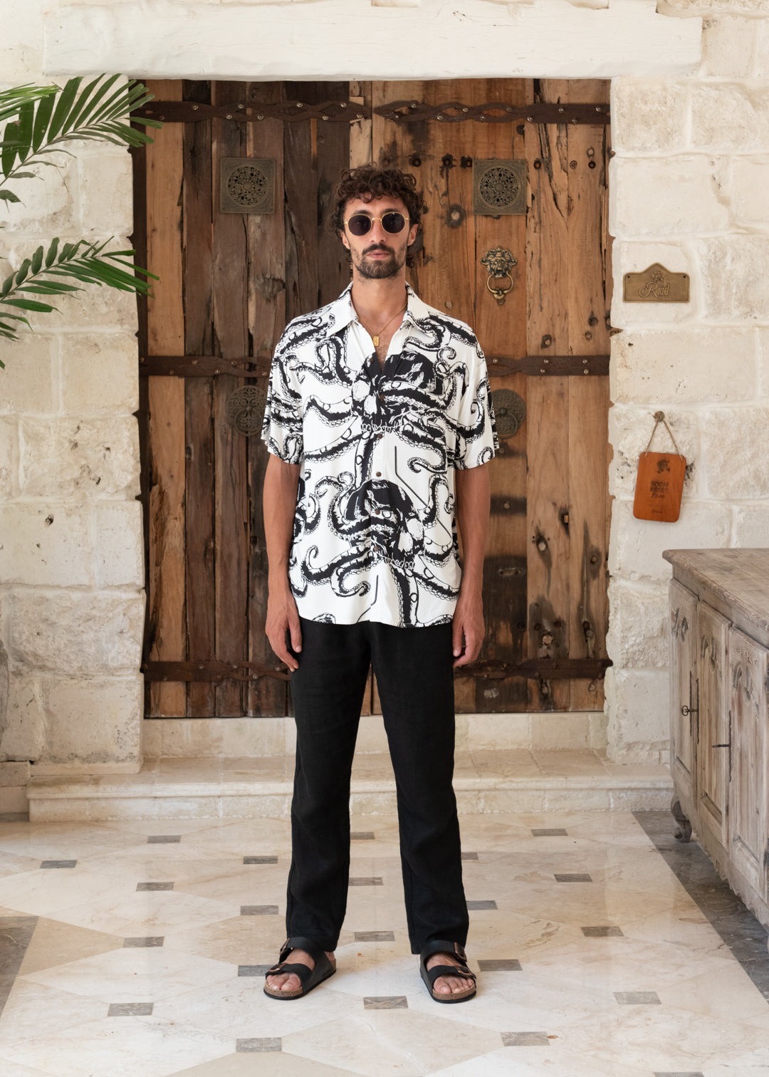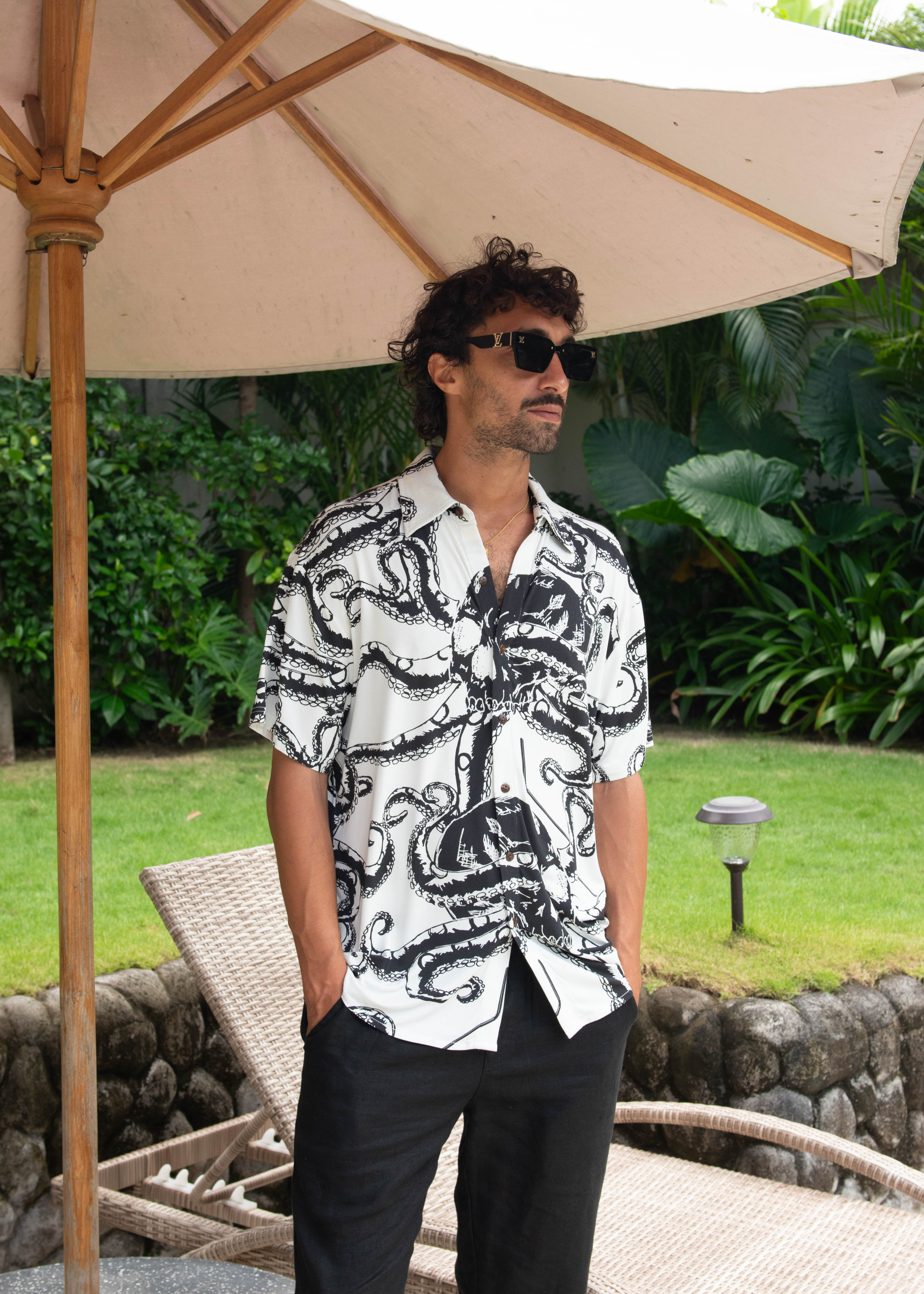 Mr Strangles Hawaiian Shirt - In Pearl White