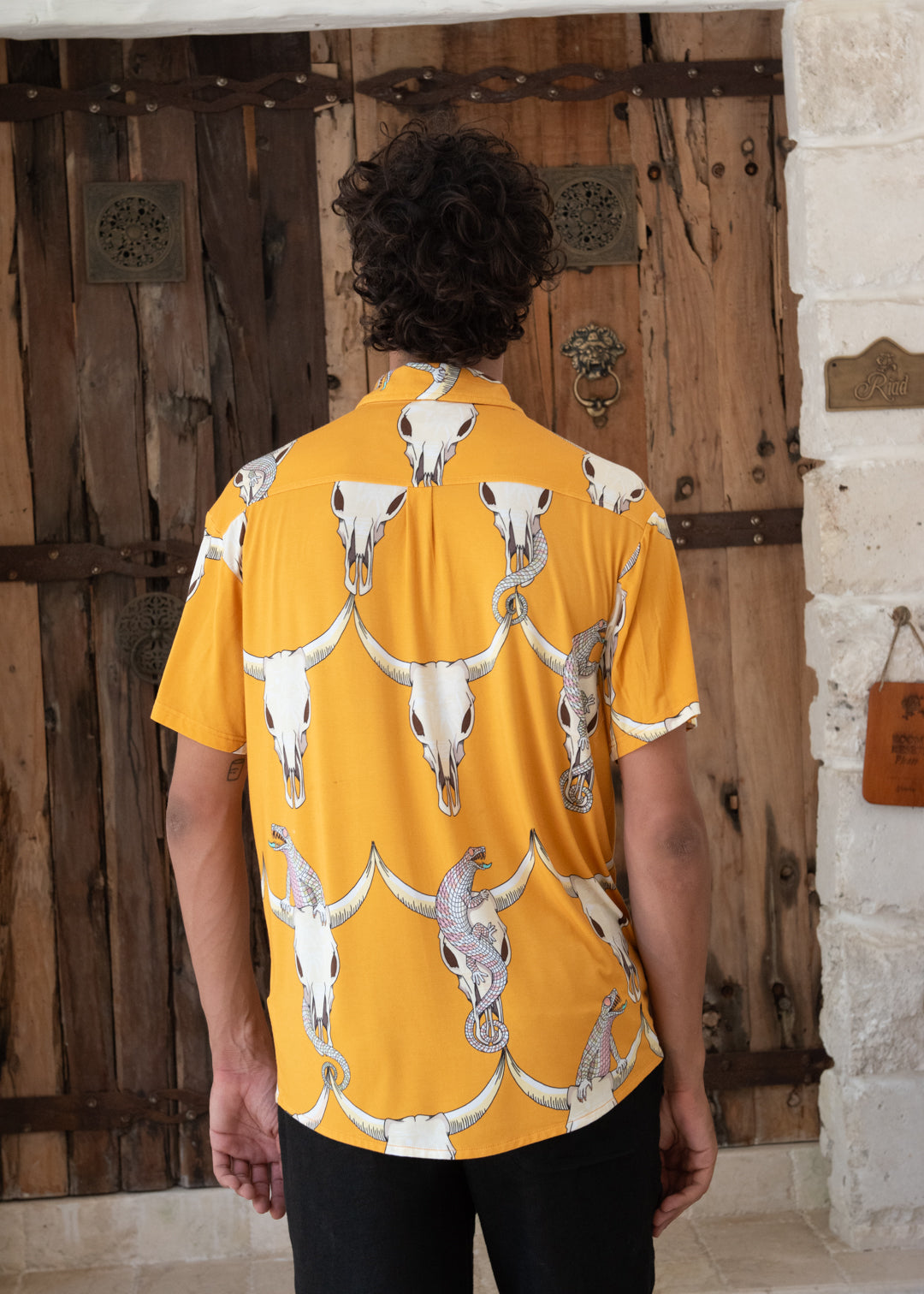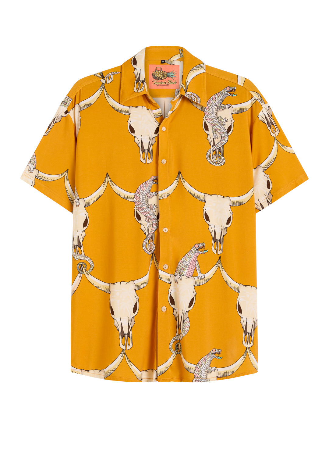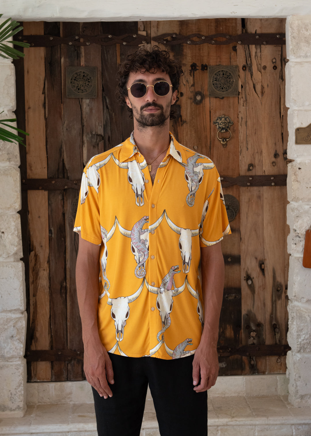 Reptilian Hawaiian Shirt - In Mustard Yellow