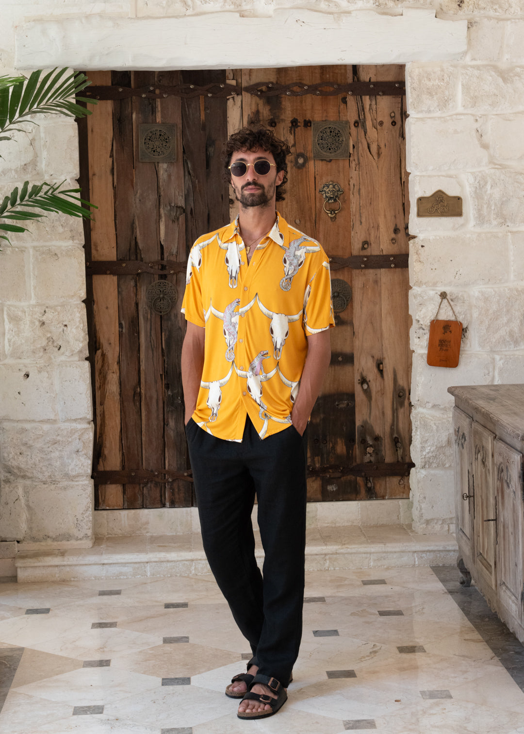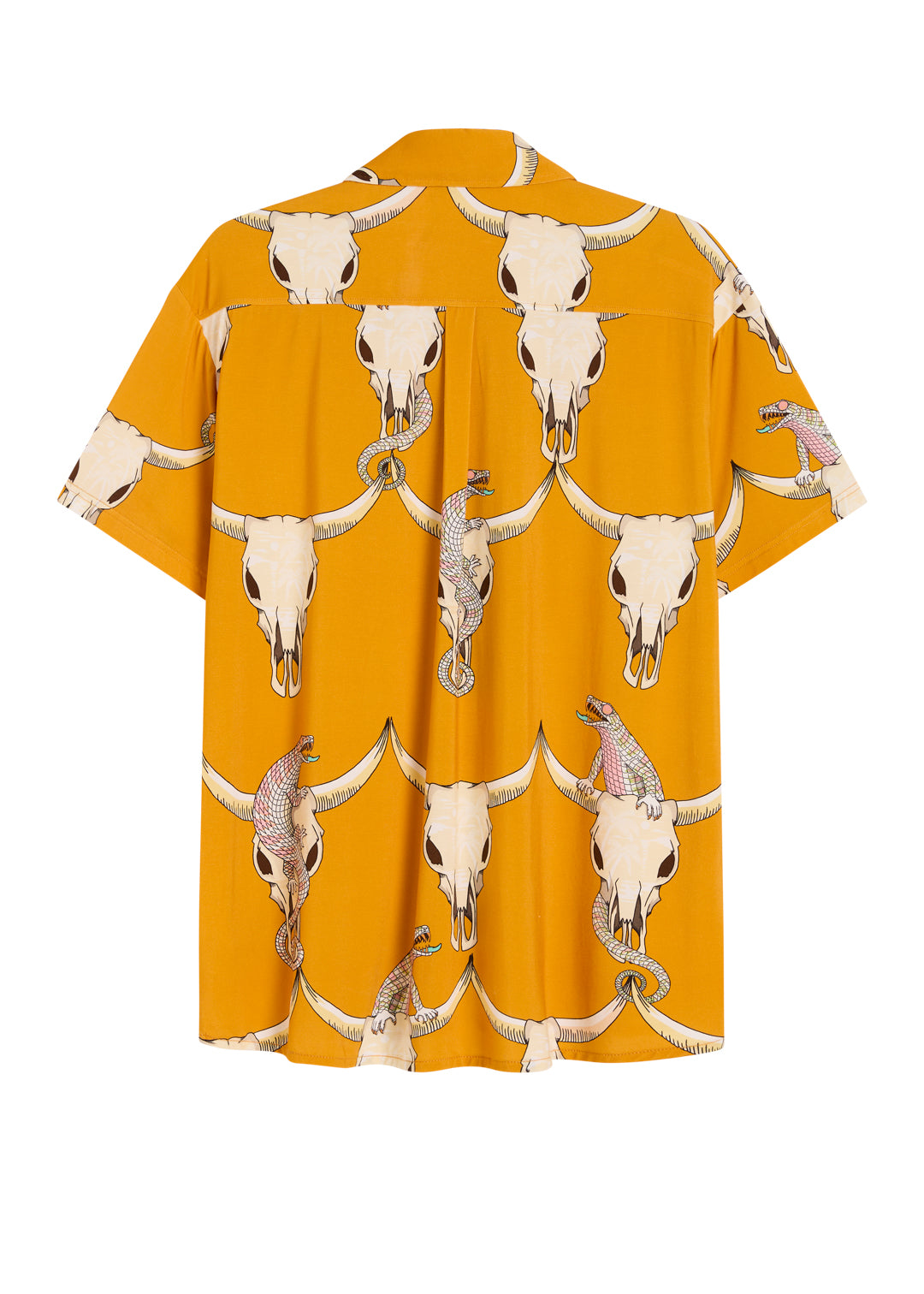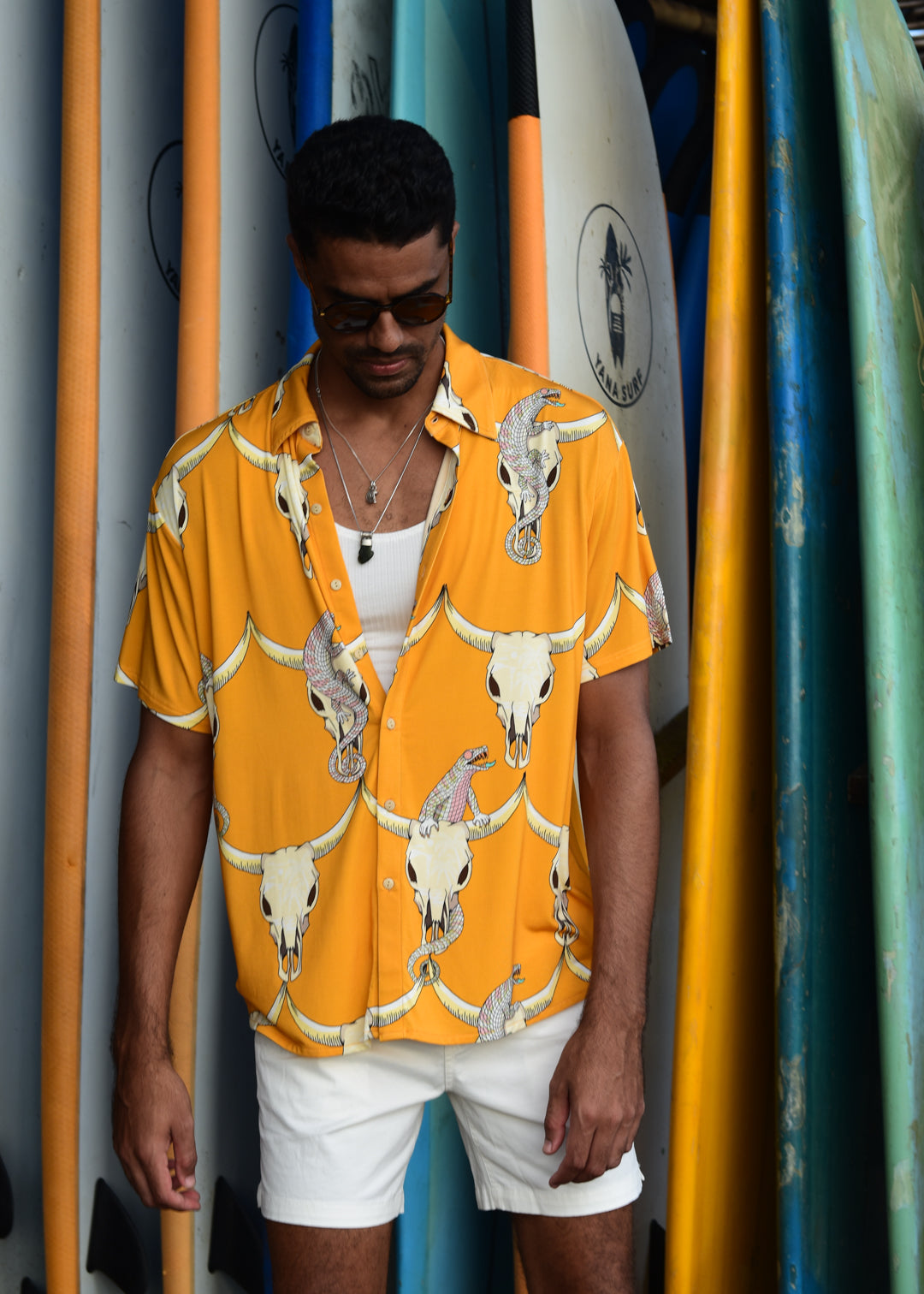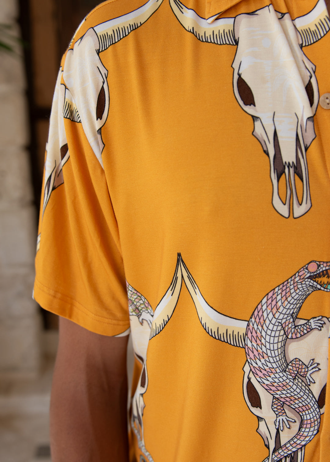 Reptilian Hawaiian Shirt - In Mustard Yellow
