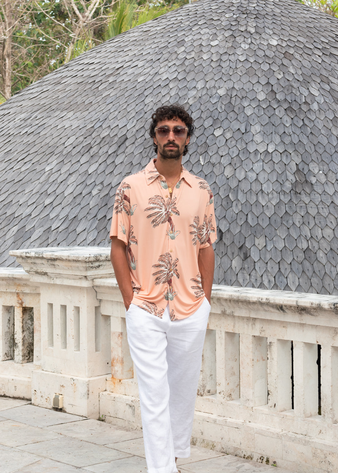Windy Palms Hawaiian Shirt - In Salmon Pink