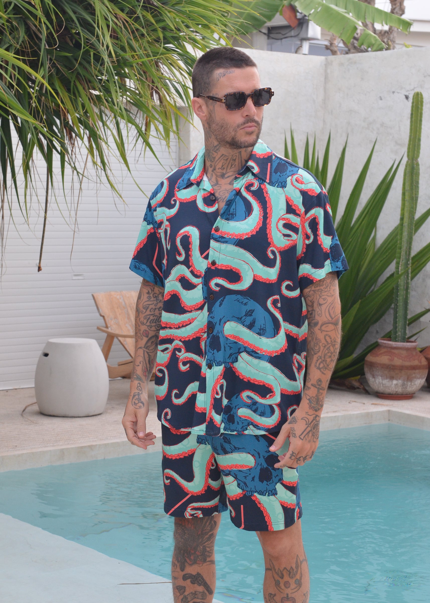 Mr Strangles Hawaiian Shorts - In Charcoal Black