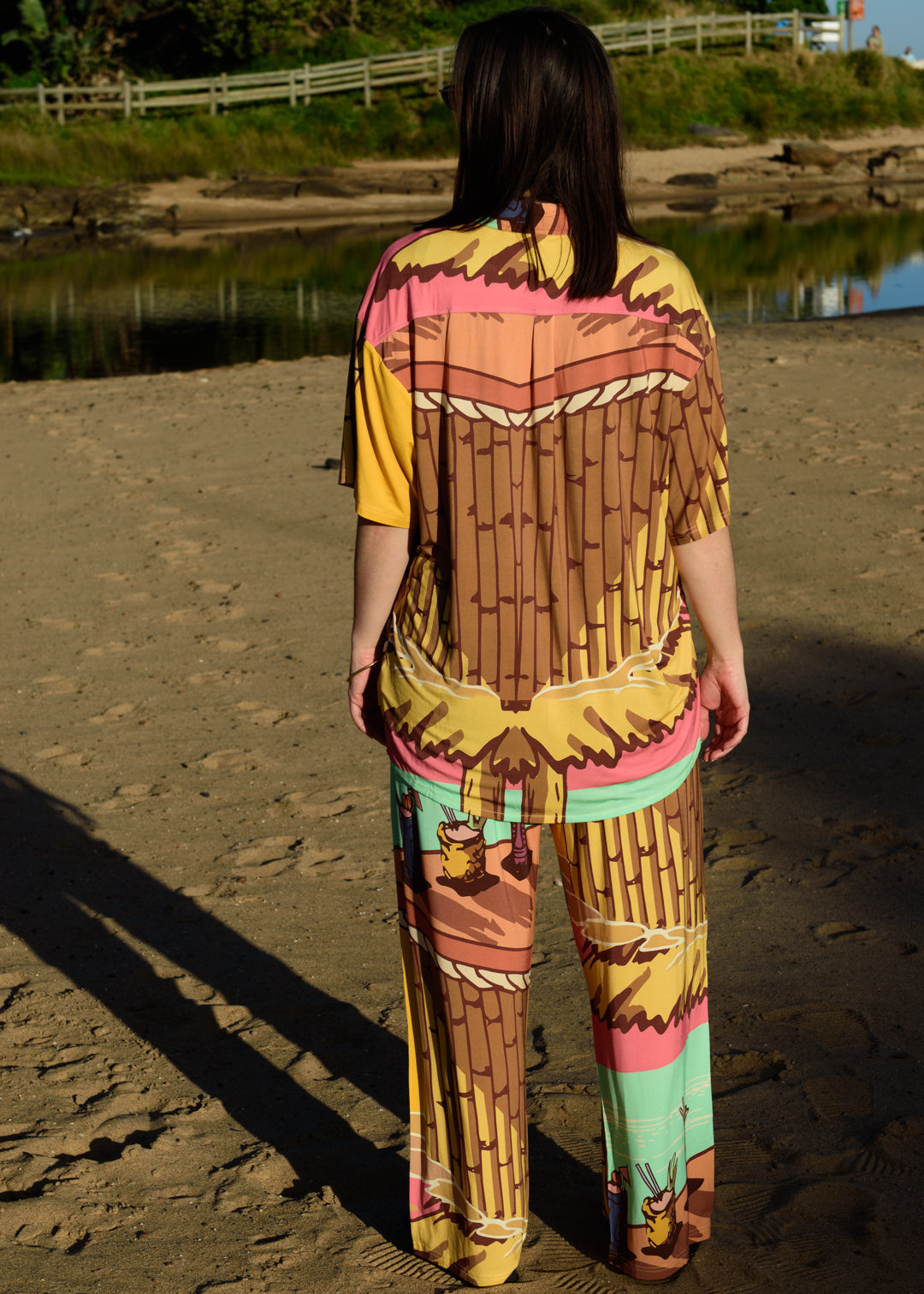 Pants can be matched with the mens shirt for the full set look. Model is wearing an L shirt. Other sizes can be seen in other product pages.